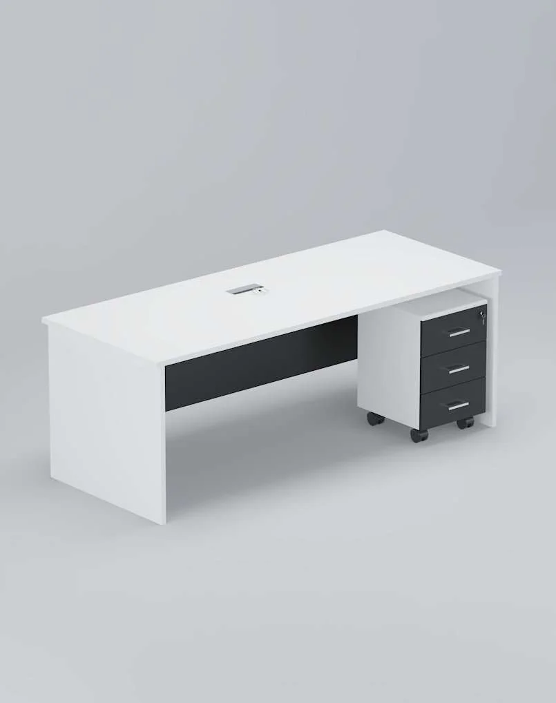 مكتب ENE Employee Desk With Storage يجمع بين التصميم العصري والخامات العملية، مع مساحة تخزين مدمجة لتنظيم المكتب، مثالي للمكاتب الحديثة والمهنية.