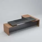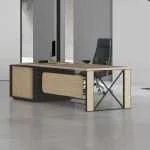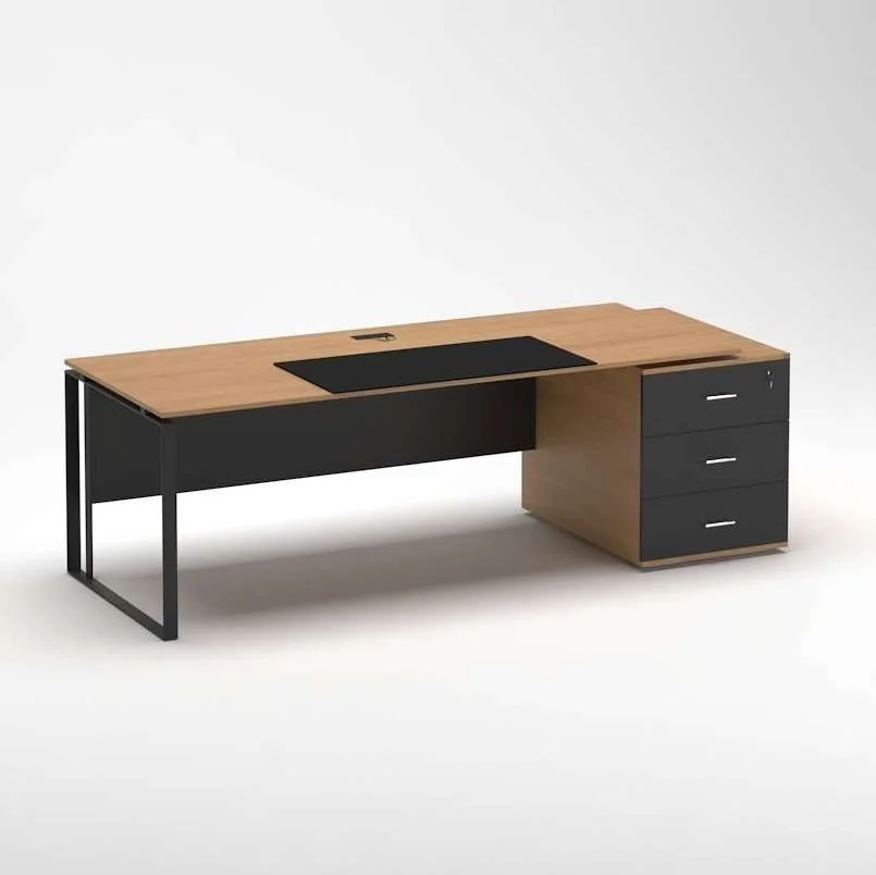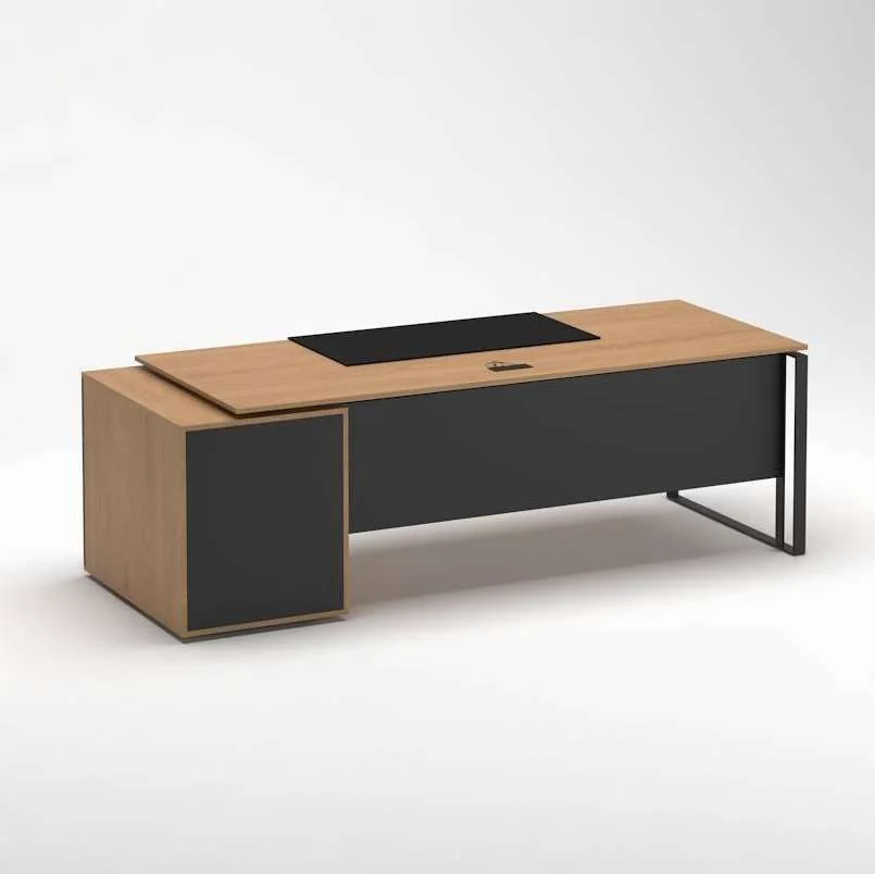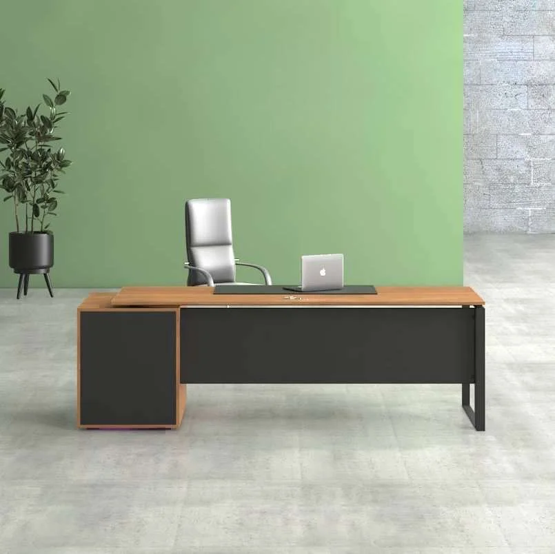 مكتب Latus Straight Manager Desk بتصميم مستقيم مع سطح خشبي ولمسات سوداء أنيقة، يوفر مساحة عملية مع تخزين مدمج مثالي للمكاتب الإدارية.