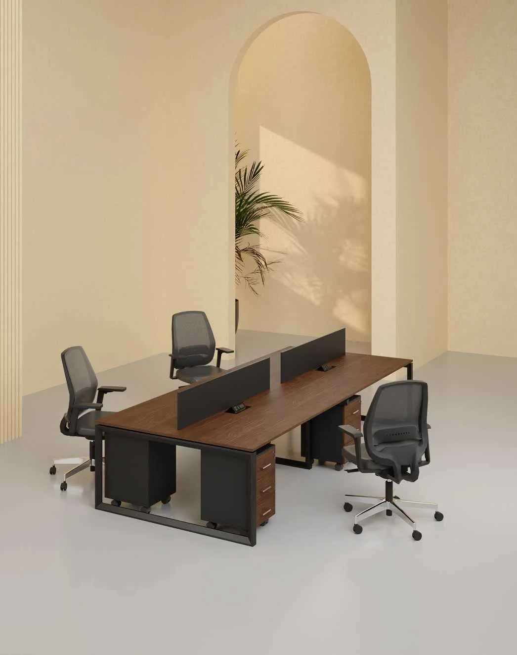 Latus 4 Seats Workstation with Storages – مكتب عمل مكون من 5 مقاعد مع تخزين مدمج، تصميم عصري يوفر خصوصية ومساحة عمل مريحة ومرتبة في المكاتب.